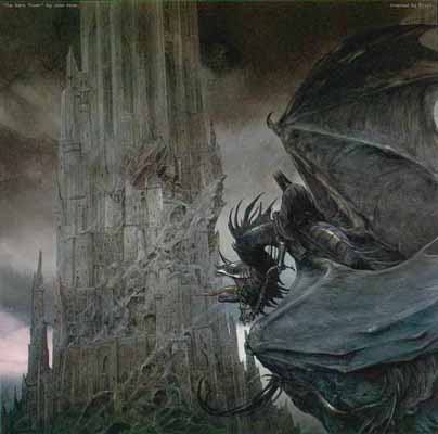 "Ho visto un cielo cupo, e alte muraglie", disse. "E minuscole stelle. Ogni cosa pareva lontanissima e remota, eppure crudele e netta. Le stelle si spegnevano a intermittenza, oscurate dal passaggio di esseri alati. Credo che fossero in realtà assai grandi, ma nel vetro sembrava vedere roteare dei pipistrelli intorno alla torre; ebbi l'impressione che ve ne fossero nove. Uno di essi punto dritto su di me, diventando sempre più grande. Aveva un orribile...no, no! Non posso dirlo".